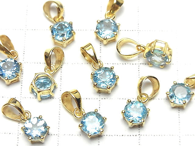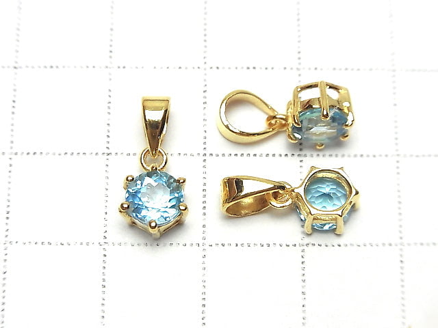 [Video] High Quality Swiss Blue Topaz AAA Brilliant Cut Pendant 7 x 6 x 5 mm 18 KGP