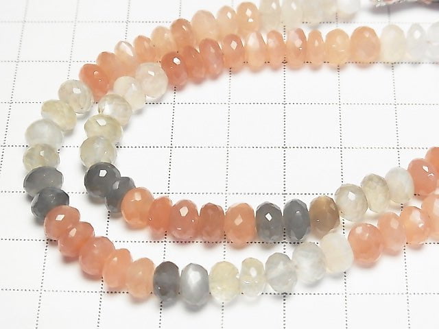 1strand $24.99! High Quality Multicolor Moonstone AAA Faceted Button Rondelle 7 x 7 x 4 mm 1 strand beads (aprx.7 inch / 18 cm)