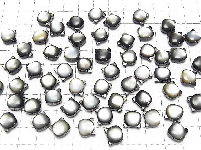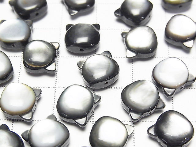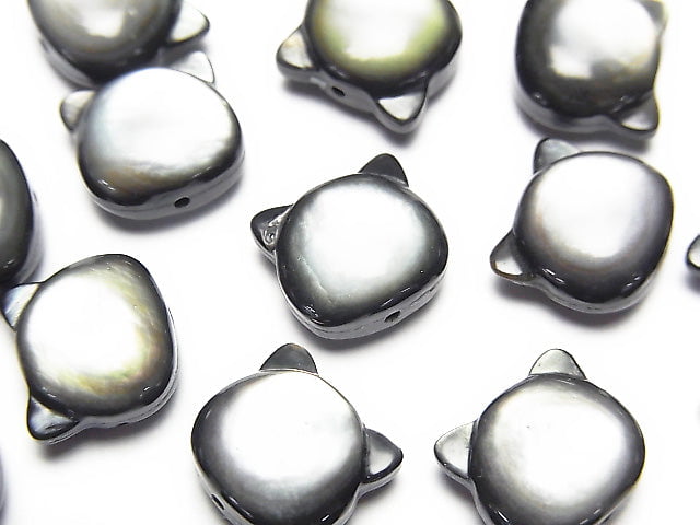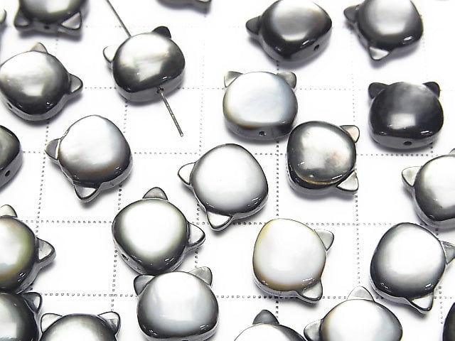 [Video] Black Shell (Black-lip Oyster) AAA Cat Motif 10x9mm [Drilled Hole] 1pc