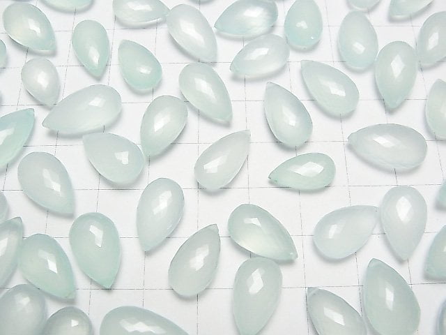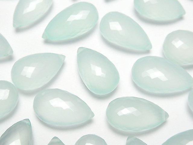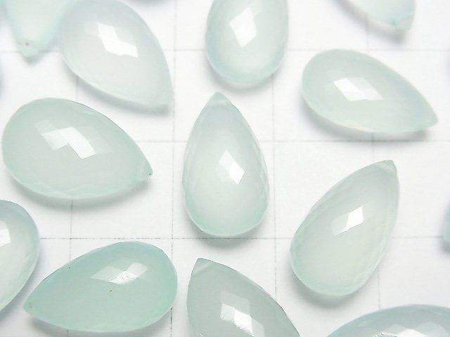 [Video] MicroCut High Quality Sea Blue Chalcedony AAA Pear shape Faceted Briolette 5pcs