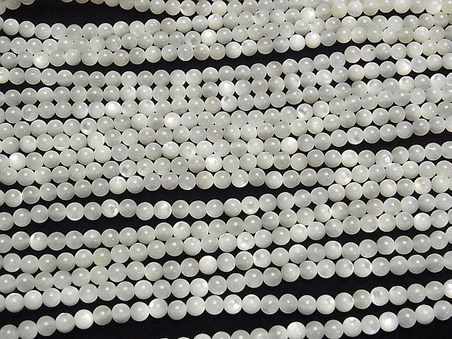 [Video] High Quality White Shell (Silver-lip Oyster) AAA Round 4mm 1strand beads (aprx.15inch / 37cm)