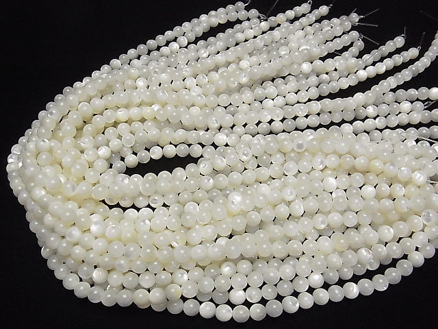 [Video] High Quality White Shell (Silver-lip Oyster) AAA Round 6mm 1strand beads (aprx.15inch / 36cm)