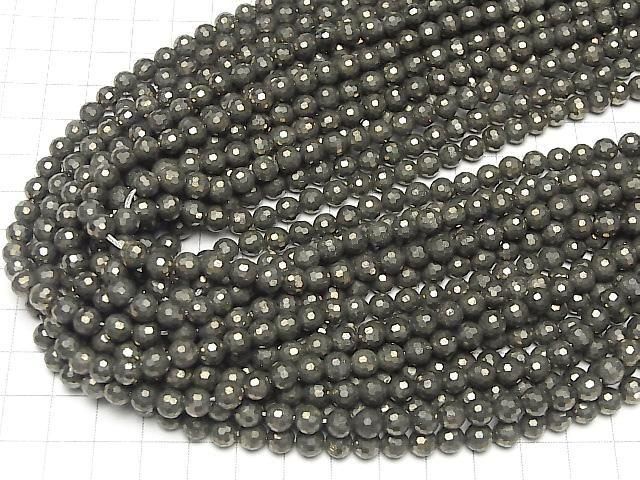 High Quality! Pyrite AAA 128Faceted Round 6mm half or 1strand beads (aprx.15inch/36cm)