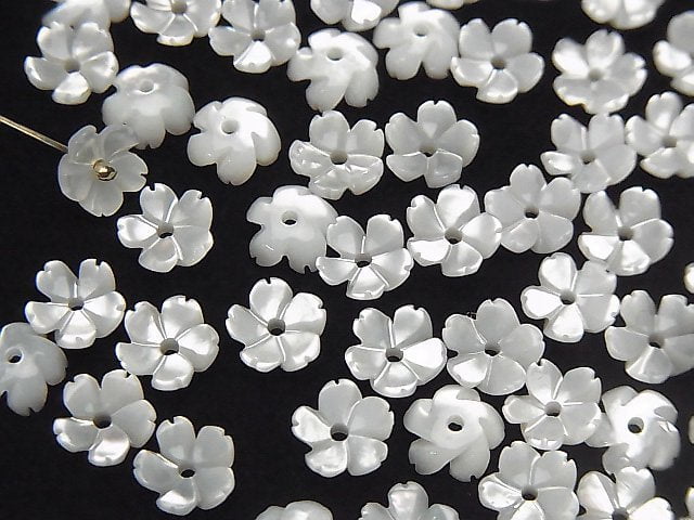 [Video] High Quality White Shell (Silver-lip Oyster) AAA 3D Flower 6mm Center Hole 4pcs