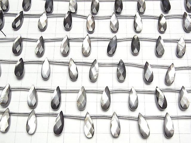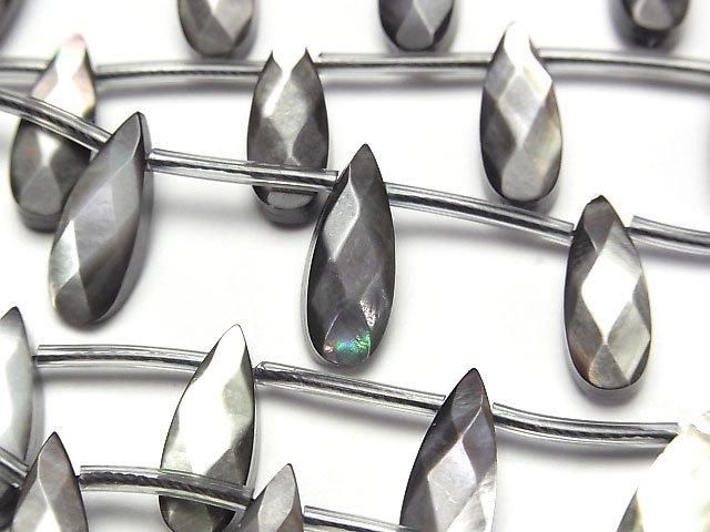 [Video] High-quality Black Shell (Black-lip Oyster) AAA Faceted Pear Shape 16x6mm 1/4 or 1-strand beads (approx. 15 inches/38 cm)