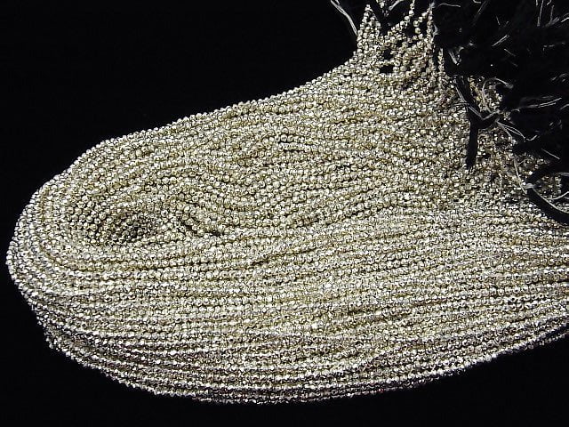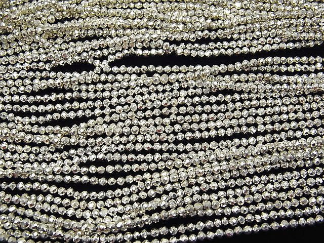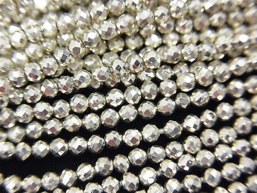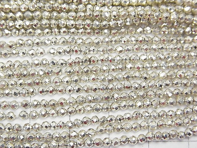 [Video] High Quality! Pyrite AAA- White Silver Coated Faceted Round 2mm 1strand beads (aprx.13inch / 32cm)