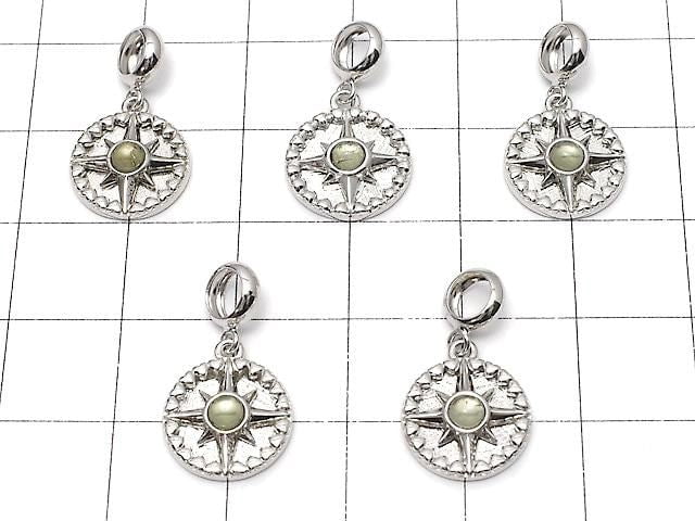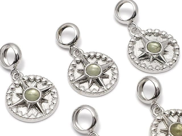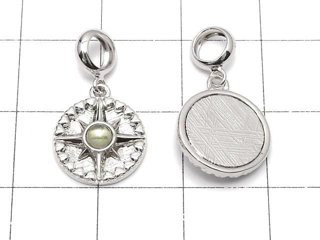 Meteorite & Moldavite 1 Stone Compass Pendant 11x11mm Silver925