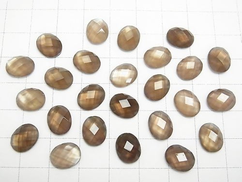 White Shell x Smoky Quartz AAA Oval Faceted Cabochon 10x8mm 3pcs