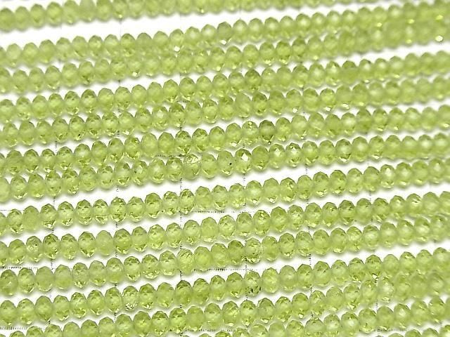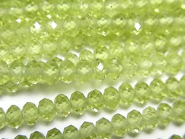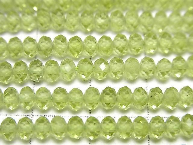 [Video]High Quality! Peridot AAA Faceted Button Rondelle 4x4x2.5mm half or 1strand beads (aprx.15inch/37cm)