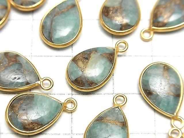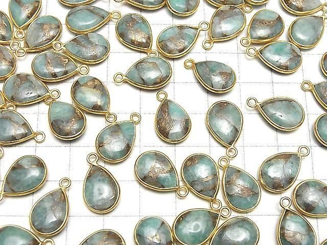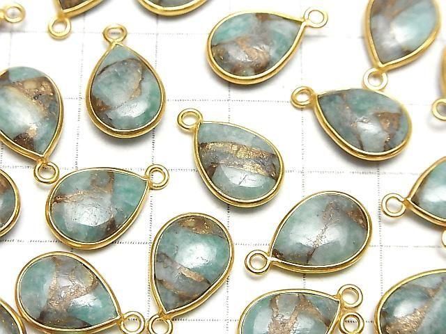 [Video] Copper Amazonite AAA Bezel Setting Pear shape 14x10mm 18KGP 2pcs