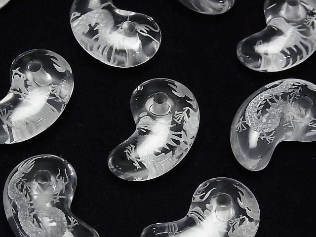 [Video] Dragon (Four Divine Beasts) Carved! Crystal AA++ Comma Shaped Bead 30x20mm 1pc