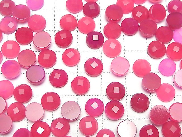 [Video]Fuchsia Pink Chalcedony AAA- Round Faceted Cabochon 8x8mm 3pcs $3.79!
