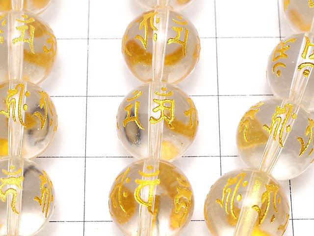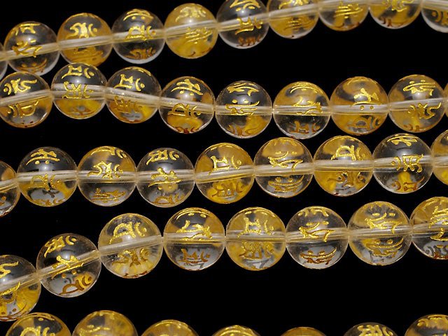 [Video] Gold! Carved with 7 types of Sanskrit characters! Crystal AAA Round 8mm-16mm half or 1strand beads (aprx.15inch/36cm)