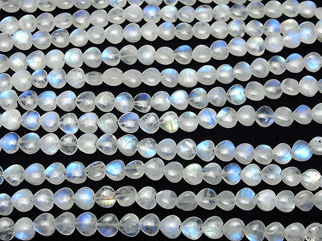 [Video] Rainbow Moonstone AA++ Vertical Hole Heart 6x6mm half or 1strand beads (aprx.6inch / 16cm)