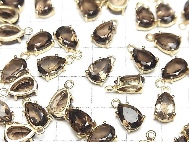 [Video]High Quality Smoky Quartz AAA Bezel Setting Pear shape Faceted 9x6mm 18KGP 2pcs