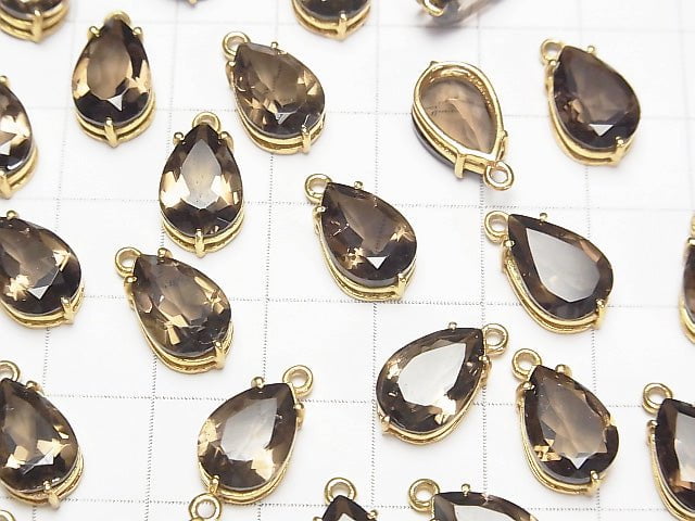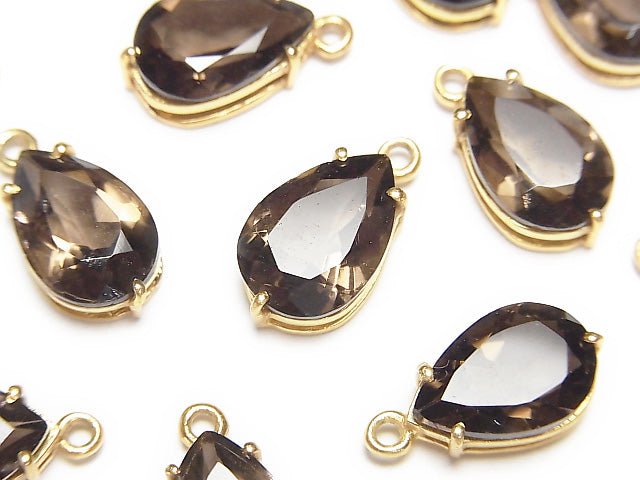 [Video] High Quality Smoky Quartz AAA Bezel Setting Pear shape Faceted 13x8mm 18KGP 2pcs