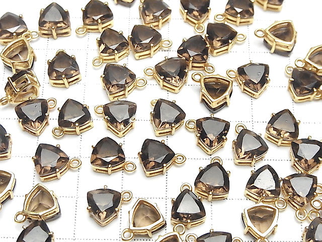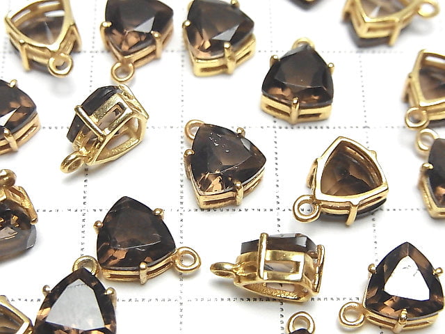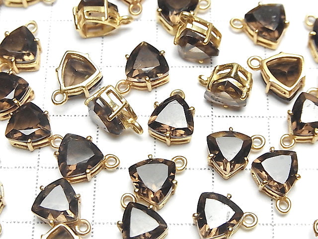 [Video]High Quality Smoky Quartz AAA Bezel Setting Triangle Faceted 9x8mm 18KGP 2pcs