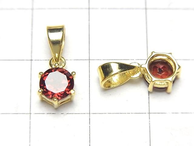 [Video] High Quality Mozambique Garnet AAA Round Faceted 7x6mm Pendant 18KGP