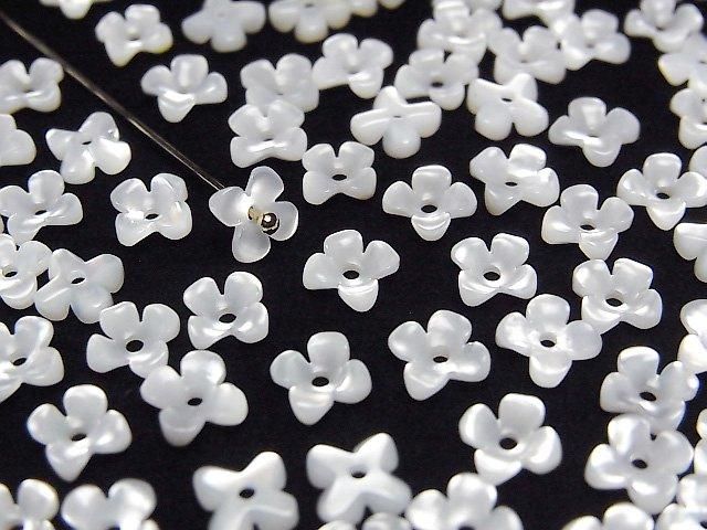 [Video] High Quality White Shell (Silver-lip Oyster) AAA Flower (4pcs Flowers) 6mm Center Hole 4pcs