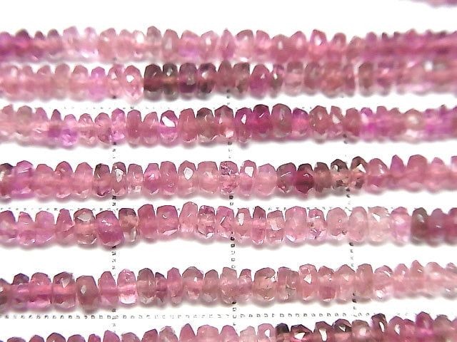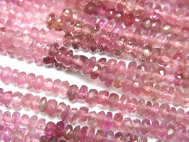 [Video]Pink Tourmaline AA++ Faceted Button Rondelle 3x3x2mm 1strand beads (aprx.14inch/34cm)