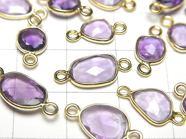 [Video] High Quality Amethyst AAA- Bezel Setting Free Form Rose Cut [Both Side] 18KGP 3pcs