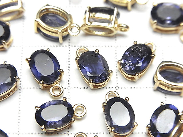 [Video] High Quality Iolite AAA Bezel Setting Oval Faceted 8x6mm 18KGP 1pc