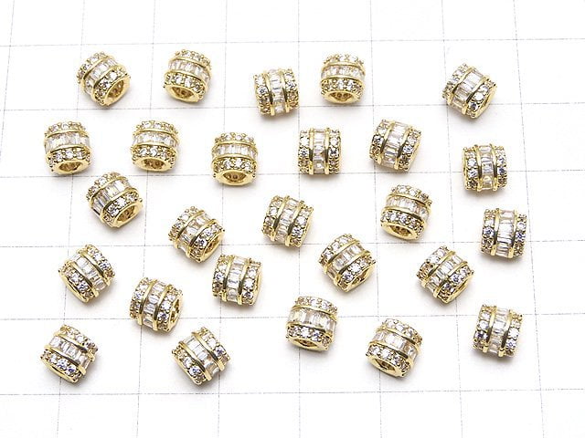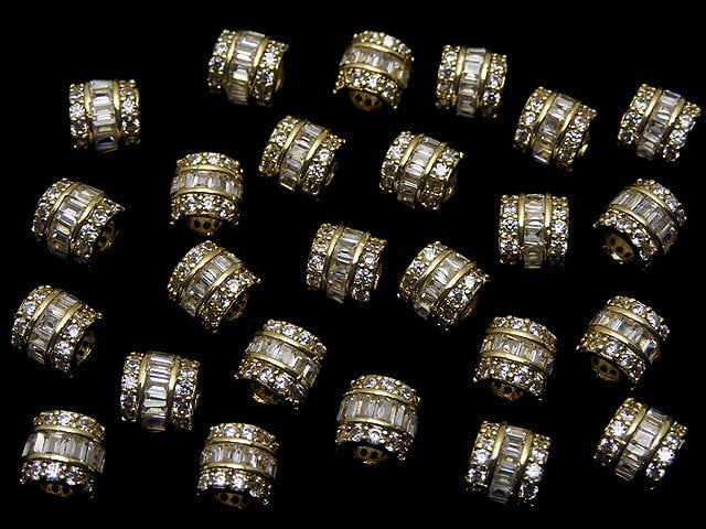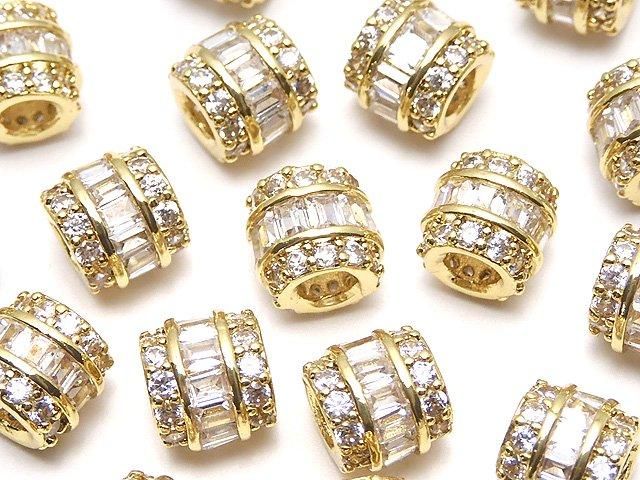 Metal Rondelle (Tube) 6x6x5.5mm Gold (with CZ) 1pc
