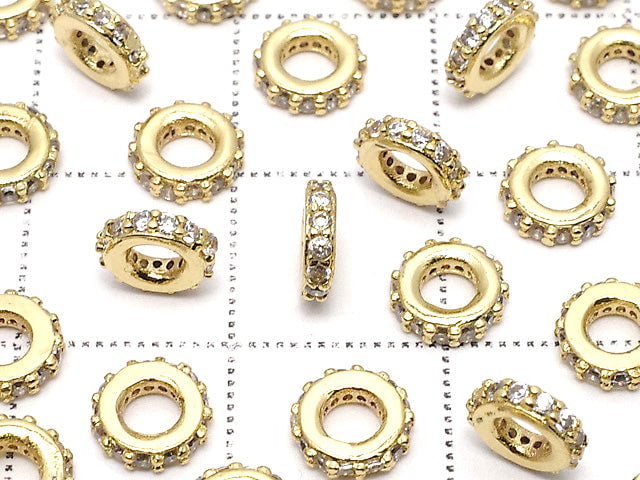 Metal parts Rondelle 6x6x1.5mm (with CZ) Gold color3pcs