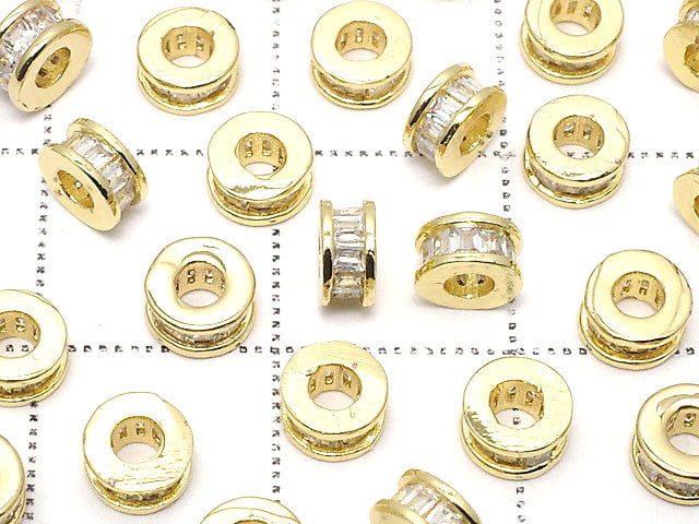 Metal Parts Rondelle 5x5x2.5mm Gold (with CZ) 2pcs