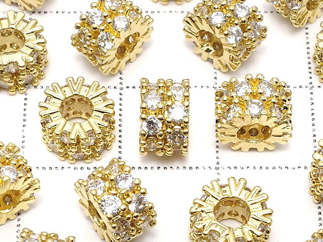 Metal Parts Rondelle 7.5x7.5x5mm Gold (with CZ) 2pcs