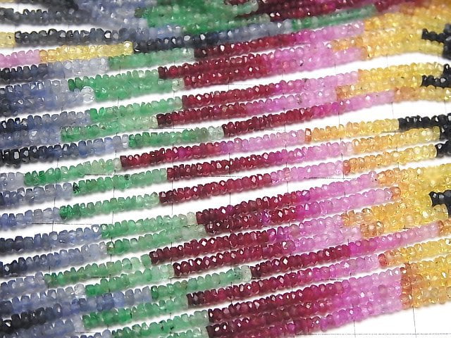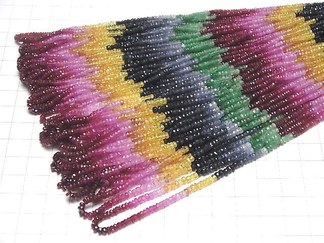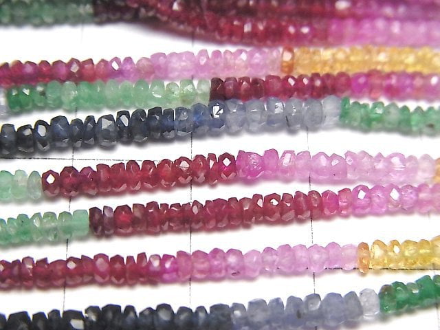 [Video]High Quality Sapphire & Ruby & Emerald AAA- Faceted Button Rondelle half or 1strand beads (aprx.15inch/36cm)
