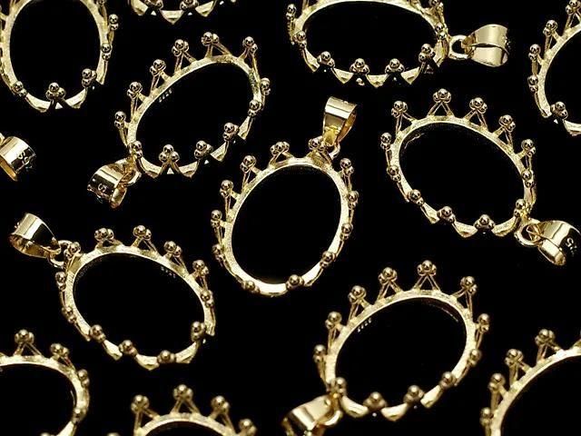 [Video] Silver 925 Crown Pendant Frame Oval 14x10mm 18KGP 1pc