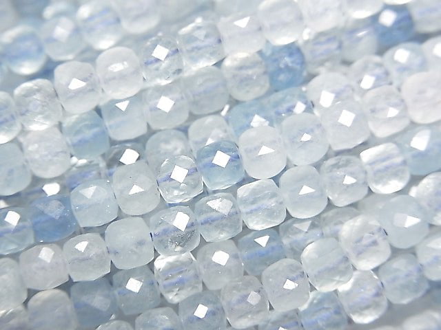 [Video] High Quality! Aquamarine AAA- Cube Shape 4x4x4mm half or 1strand beads (aprx.15inch/36cm)