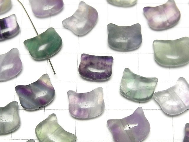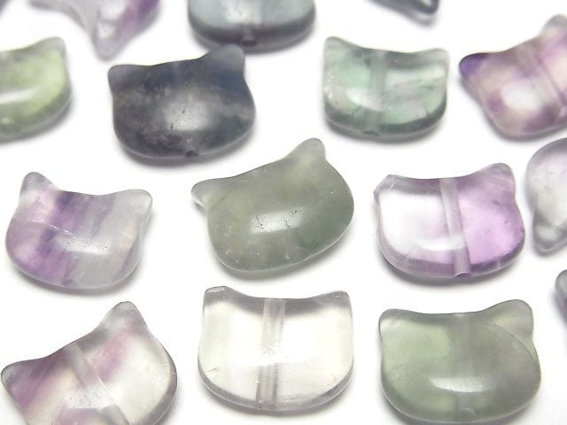 [Video] Multicolor Fluorite Cat Motif 10x12mm [Drilled Hole] 3pcs