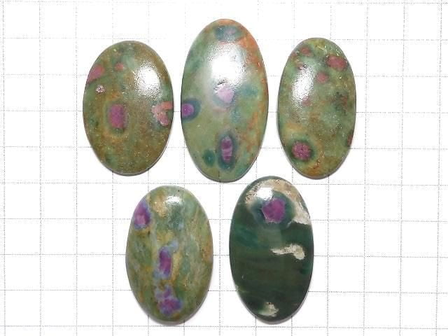 [Video][One of a kind] Ruby in Fuchsite AAA Cabochon 5pcs Set NO.147