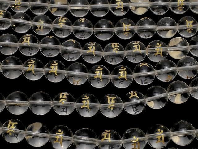 [Video]Golden! Man (Sanskrit Characters) Carved! Crystal (Synthetic Quartz) AAA Round 12mm half or 1strand beads (aprx.15inch/37cm)