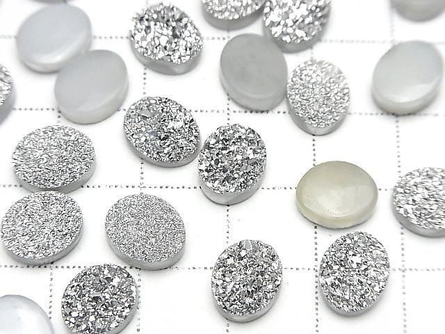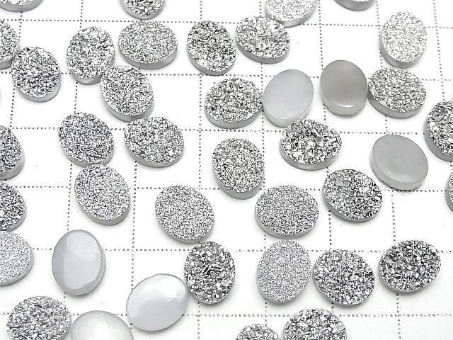 [Video] Druzy Agate Oval Cabochon 10x8mm Silver Plated 3pcs