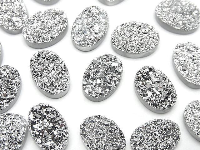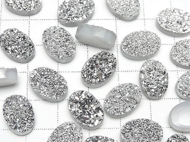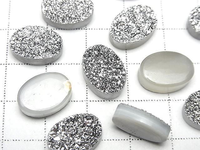 [Video] Druzy Agate Oval Cabochon 14x10mm Silver Plated 2pcs