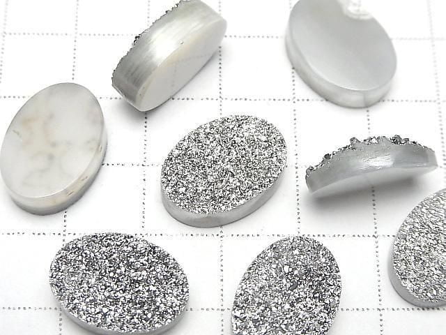 [Video] Druzy Agate Oval Cabochon 18x13mm Silver Coated 1pc