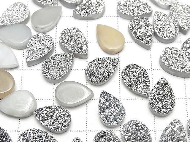 [Video] Druzy Agate Pear Shape Cabochon 12x8mm Silver Coated 3pcs