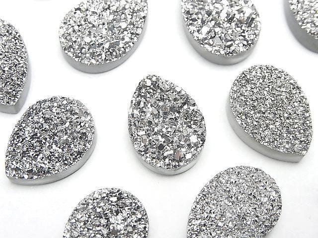 [Video] Druzy Agate Pear Shape Cabochon 18x13mm Silver Coated 1pc