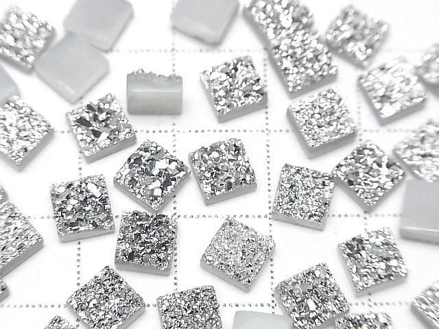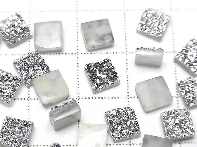 [Video] Druzy Agate Square Cabochon 6x6mm Silver Coated 5pcs