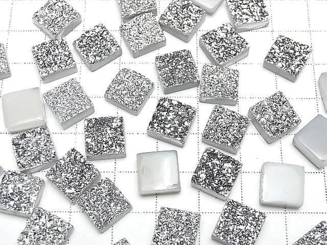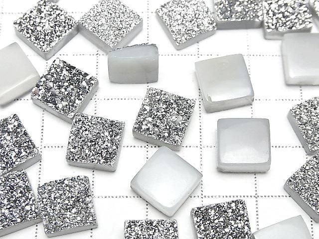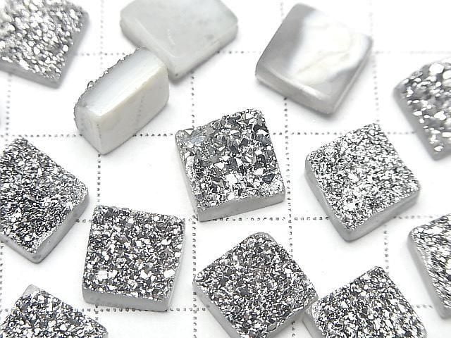 [Video] Druzy Agate Square Cabochon 10x10mm Silver Coated 2pcs