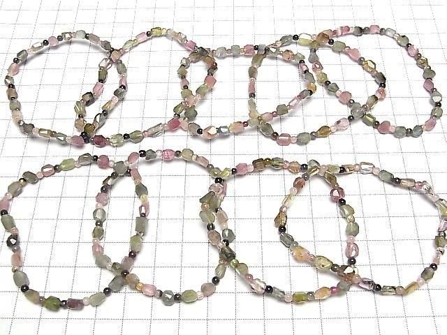 [Video] Multicolor Tourmaline AA Faceted Nugget & Round 3mm Bracelet