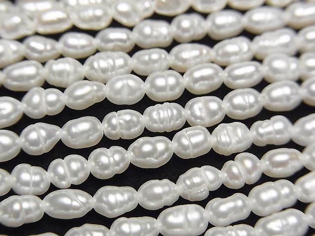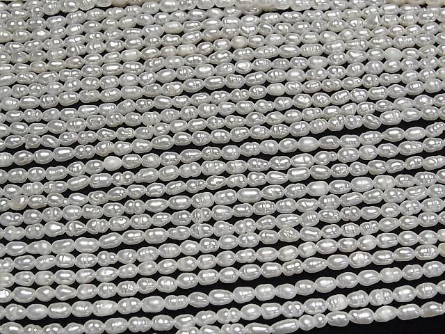 [Video] Fresh Water Pearl AA Wrinkle Rice 4x3x3mm White 1strand beads (approx. 14 inches/35 cm)