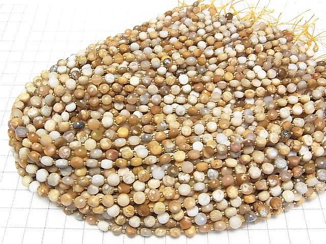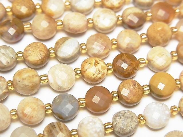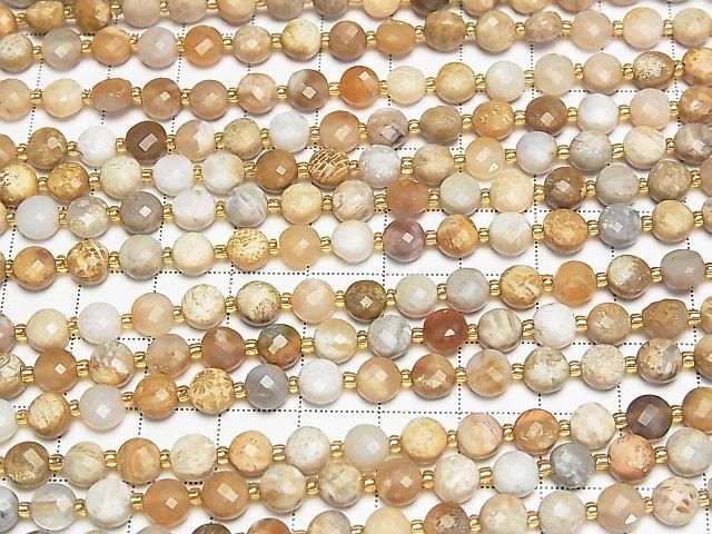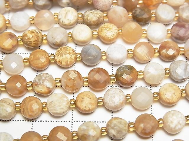 [Video]High Quality! Fossil Coral Faceted Coin 6x6x4mm 1strand beads (aprx.15inch/37cm)