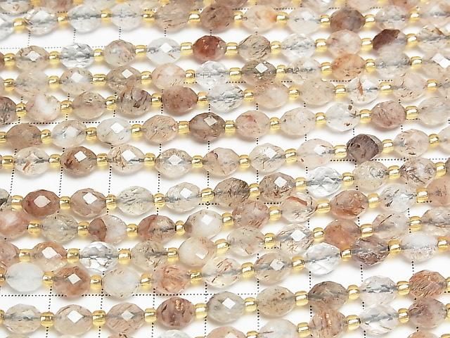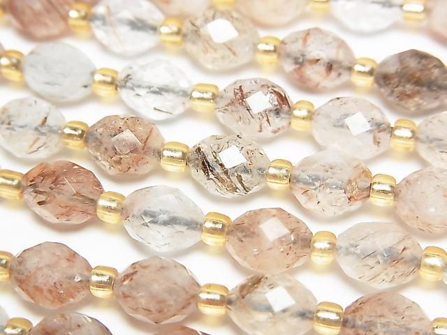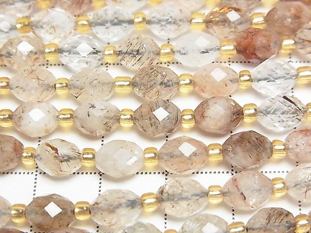 [Video] High Quality! Mica in Quartz AA+ Faceted Rice 8x8x6mm Half or 1strand beads (approx. 15 inches/36 cm)