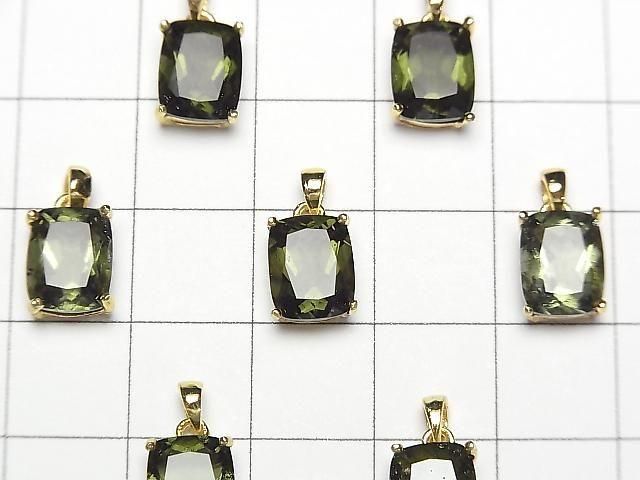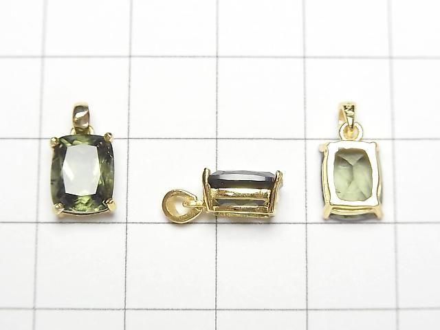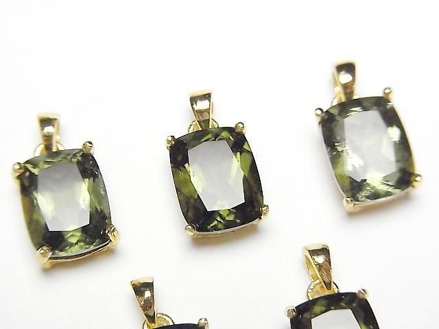 [Video] High Quality Moldavite AAA Rectangle Faceted 9x7mm Pendant 18KGP 1pc