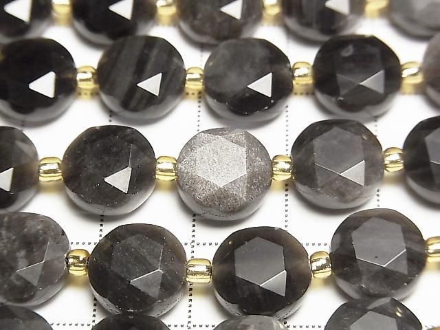 [Video] High Quality! Silver Obsidian AAA Hexagram Faceted Coin 10.5x10.5x5.5mm Half or 1strand beads (approx. 15 inches/36 cm)