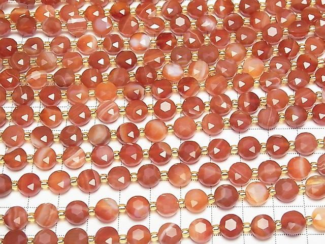 [Video] High Quality! Carnelian, Sardonyx Hexagram Faceted Coin 8x8x5mm 1strand beads (aprx.15inch/36cm)